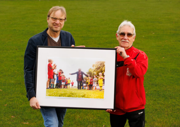 Fromme und Feugmann verbindet eine lange Freundschaft. Daher freut sich der Betreiber der Sportfotoagentur „firo“ über sein Preisbild auch mit Blick auf Werner Feugmann. „Ich finde es toll, dass hiermit auch das Ehrenamt gewürdigt wird.“ Denn: Werner Feugmann ist auf dem Foto nach 36-jähriger Arbeit als Nachwuchstrainer bei der DJK Dülmen verabschiedet worden.