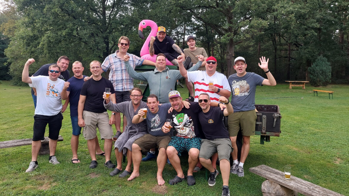 Mit dem 260. Schuss holte Alexander Kleine Vorholt (graue Jacke) am Wochenende den Holzvogel von der Stange und sicherte sich damit die Regentschaft, als der Visbecker Schützenverein sein fünftes Schützenfest feierte. Der 2019 gegründete Zusammenschluss von rund 20 Schützen verbrachte wie in den vergangenen Jahren dazu eine gesellige Zeit auf einer idyllisch im Dernekamp gelegenen Wiese. Zu den Gratulanten zählten auch die bisherigen Visbecker Schützenkönige: Michael Strauch (2020), Markus König (2021), Matthias Kleine Stegemann (2022) sowie Frank Ellerkamp (2023). Entstanden ist der Visbecker Schützenverein aus der Gemeinschaft einer Fahrradtour heraus – als Juxidee. Und da alle, die an der Gründung des neuen Schützenvereins interessiert waren, auch in anderen Dülmener Schützenvereinen als Mitglied aktiv sind, ist ein gehöriges Maß an Schützen-Spirit vorhanden. So gehört auch Christian Jasper (rechts), Vorsitzender vom Schützenverein Kohvedel, und Markus Friehage (sitzend rechts), amtierende Majestät vom Nieströter Schützenverein, dem Visbecker Schützenverein an. Das Schießen mit luftgetriebener Munition erfolgt seit Vereinsgründung auf einen Holzvogel, den auch in diesem Jahr Martin Harde aus Lembeck gefertigt hatte. Noch in gestalterischer Entwicklung befindet sich aktuell das Vereins-Signet beziehungsweise Vereins-Wappen. Das sollte so gut sein, dass es auch die nächsten Jahrhunderte Bestand hat, ist man sich beim Visbecker Schützenverein einig. Design-Schnellschüsse verbieten sich da. Aber auch ohne Wappen hat der Visbecker Schützenverein inzwischen einige Bekanntheit. So wurden Vereinsvertreter des Visbecker Schützenvereins bei Schützenfest-Frühschoppen anderer Dülmener Schützenvereine bereits namentlich willkommen geheißen – in ordentlicher schützenmäßiger Kameradschaft und Verbundenheit!