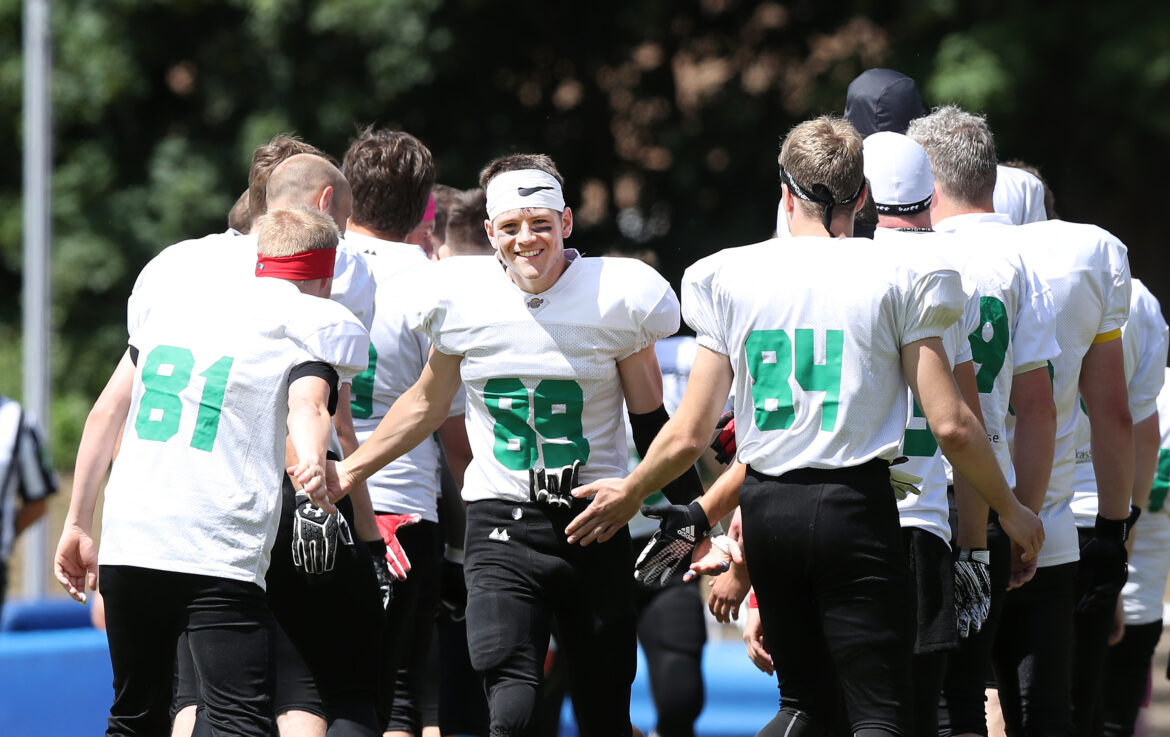 „Das ist natürlich eine große Ehre, sich auf so einem Niveau messen zu dürfen”, weiß Höltker diese einzigartige Möglichkeit zu schätzen. Als Wide Receiver ist er für das Fangen der Bälle in der Offensive zuständig – eine Position, die bei vielen Football-Fans neben dem Quarterback, der als Spielmacher fungiert, sehr beliebt ist. „Viele, die bei den Coesfeld Bulls zum Training kommen, dürfen sich zunächst als Wide Receiver probieren”, erinnert er sich auch an sein eigenes erstes Training im Jahr 2018 zurück. „Da hab ich anscheinend einen guten Eindruck bei den Coaches hinterlassen, sodass ich die Position weiterspielen durfte.“