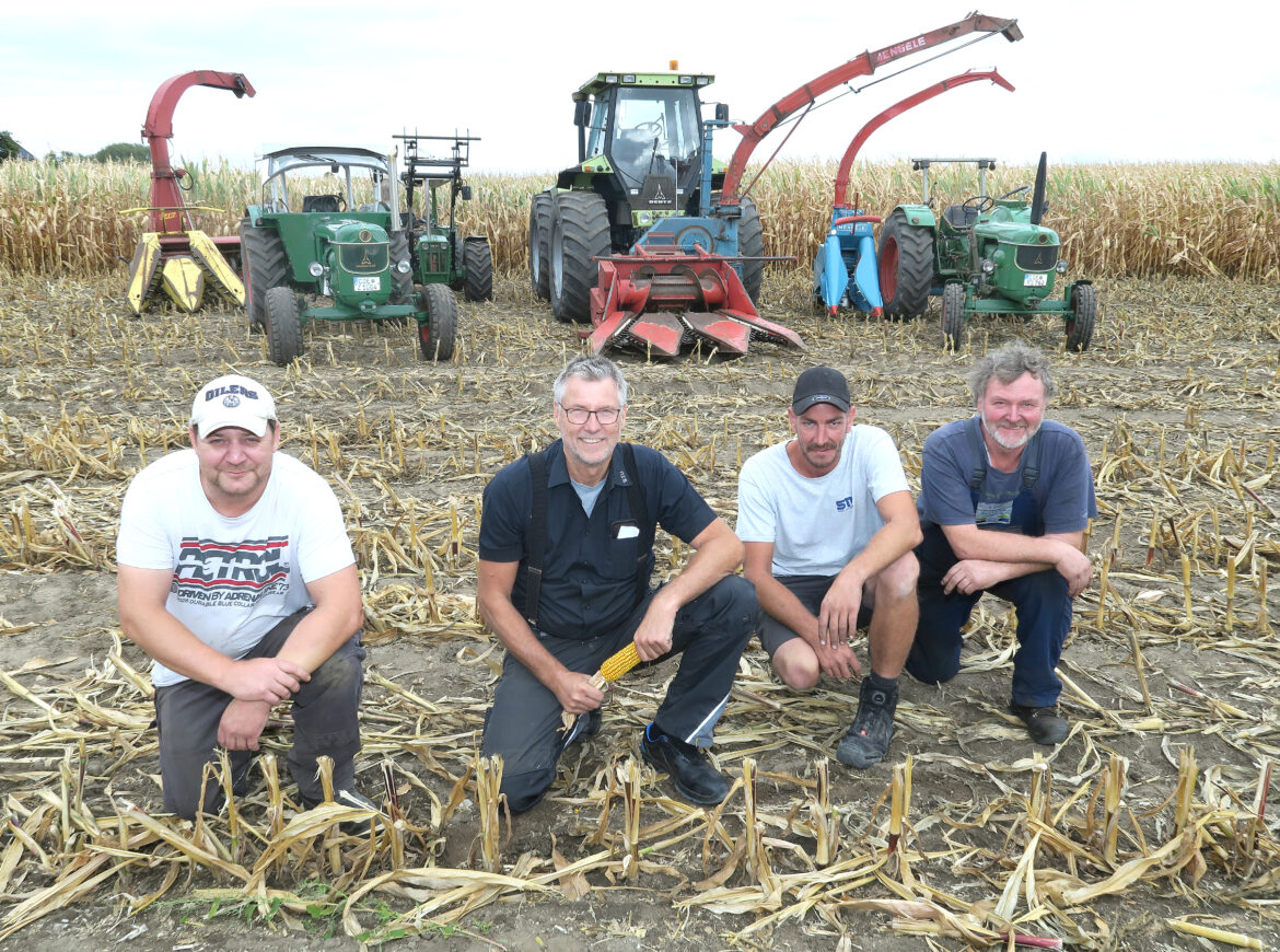 Dülmen. Mais spielt auch hier in der Region eine bedeutende Rolle in der Landwirtschaft, und inzwischen gibt es für die Ernte selbstfahrende Maishäcksler mit über 1.000 PS Motorleistung und Erntevorsätzen von bis zu zwölf Reihen Arbeitsbreite. Dahingegen sah die Maisernte in den 1970er und 1980er Jahren noch sehr anders aus. Damals wurden Maishäcksler an vorhandene Traktoren angebaut. An diesem Samstag, 17. September, ist ab 10 Uhr bis abends und nochmal in der Dunkelheit unter Scheinwerferlicht gegen 21 Uhr unweit der Columbus-Farm (Dernekamp 116) die Ernte einer rund sieben Hektar großen Maisfläche mit drei solcher historischer Anbau-Häcksler (Foto) zu erleben. Als Akteure unter anderem dabei sein werden (von links) Oliver Zettl, Wolfgang Arning, Michael Finkenbrink und Josef Kock. Sie und andere haben sich zu den „Schlepperfreunden St.-Barbara-Kaserne“ zusammengeschlossen; aktuell läuft die Eintragung als e. V. Rund 20 Trecker, die alle älter als 30 Jahre sind, werden Samstag den gehäckselten Mais zur Dernekämper Biogasanlage (Dernekamp 30) abfahren. Per Planwagen, der neben den Häckslergespannen fährt, kann das Geschehen auf dem Feld hautnah erlebt werden. Der Eintritt ist frei; für Getränke und Gegrilltes ist gesorgt.