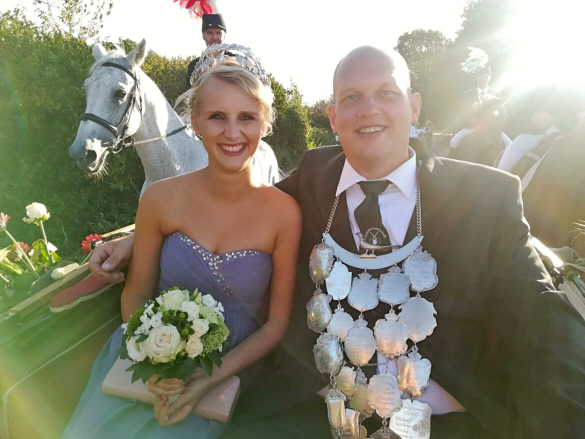 Zum Jubiläums-Samstag mit großem Festumzug eingeladen sind auch die Schützenvereine mit ihren Majestäten von Daldrup, Dernekamp, Hiddingsel, Buldern, Mitwick-Weddern, Pluggendorf und Karthaus.