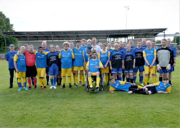 Dülmen. Am vergangenen Freitag standen sich mal wieder in einem Freundschaftsspiel das gemischte Team der beiden TSG-Leichtathletik-Gruppen „Krachenden Knochen / Die Laufmaschen“ und das Team der Behindertenfußballmannschaft der TSG Dülmen gegenüber, die von Melitta Kamper trainiert wird.