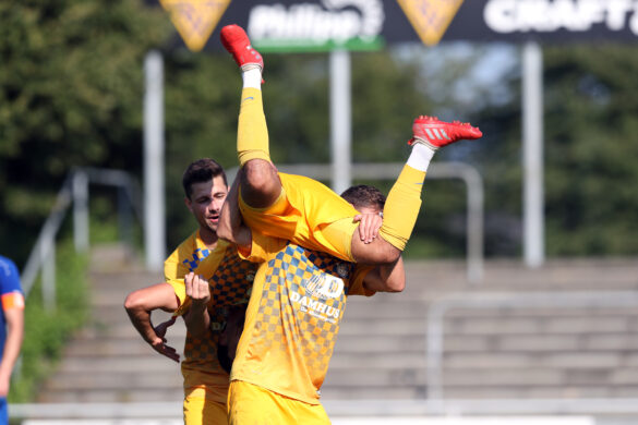 Dülmen (as). Die Kicker der TSG Dülmen zeigen, wo sie hinwollen: Eine Liga hoch. Die Gäste vom VfB Kirchhellen starteten zwar solide, hielten bis zur Pause mit, doch dann brachen alle Dämme und das Spiel endete 8:1 für die TSG. Entsprechend zufrieden zeigte sich Marvin Möllers, auch mit der eigenen Leistung. Er steuerte drei Treffer bei: „Wir kamen, wie gegen Merfeld, extrem gut ins Spiel und machten zwei Treffer. Doch in der 42. Minute kassierten wir einen Gegentreffer aus dem Nichts, und dann kam der Schlendrian in unser Spiel.“ Doch in der Pause fanden Möllers und Coach Manni Wölpper die richtigen Worte: „Wir wollten zeigen, was wir können und den Zuschauern was liefern. Nach den ersten fünf Minuten des Abtastens haben wir das dann auch getan. Allesamt. Ein Lob auch an die Einwechselspieler, die direkt voll da waren.“ Für die weiteren Treffer der Blau-Gelben sorgten Alexander Kock, Robin Kettner, Denis Usein (2) und Florian Schwarz. Am Sonntag geht es nun zum SV Zweckel – dort haben die Dülmener noch eine Rechnung offen, so Möllers: „In der vergangenen, abgebrochenen Saison haben wir nur einmal nicht gewonnen. Gegen Zweckel. Das Spiel ging 1:1 aus – und dieses Mal wollen wir keine Punkte liegen lassen. Aber keine Ahnung, auf was für eine Mannschaft wir da genau stoßen und wie die aus der langen Corona-Pause gekommen sind. Wir müssen einfach konzentriert auftreten.“