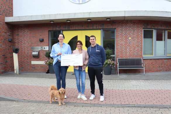 Über eine Spende in Höhe von 250 Euro freut sich das Hospiz Anna Katharina, vertreten durch Einrichtungsleiterin Rabea Brake (links). Das Geld wurde von der BSG Dülmen, vertreten durch Marwin Teschendorf und Heike Strotmann, überreicht. Zusammengekommen war die Summe durch ein „Spenden-Cycling-Event“, bei dem am 4. Juni jeweils elf Personen zwischen 20 und (mindestens) 60 Jahren fünf Stunden lang je 45 Minuten lang auf „Spinning-Rädern“ für den guten Zweck strampelten. „Das Event ist super angekommen“, fasste Marwin Teschendorf zusammen. „Wir haben richtig Party auf den Rädern gemacht!“ Und weil die Aktion so gut angenommen wurde, soll es eine Wiederholung geben, so Heike Strotmann: „Vermutlich irgendwann im Winter, wir kündigen das frühzeitig an!“ Rabea Brake bedankte sich im Namen des Hospizes: „Das Hospiz-Angebot ist für unsere Gäste kostenfrei – um das zu ermöglichen, sind wir allerdings auf jede Spende angewiesen. Vielen Dank an die BSG Dülmen!“ Weitere Informationen, wie man das Hospiz unterstützen kann, sind unter www.hospiz-anna-katharina.de zu finden. Infos zum Angebot der BSG unter www.bsg-duelmen.de. Foto: André Sommer