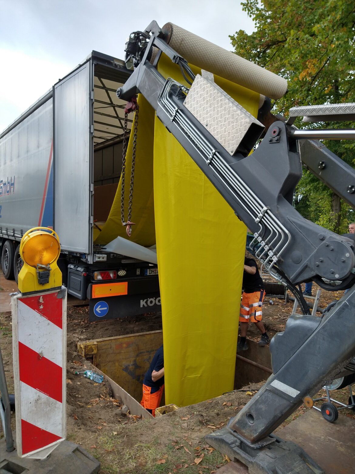 Dülmen. Vor einer Herkules-Aufgabe stand in dieser Woche die Baufirma Aarsleff: Mitarbeitende setzten in den Regenwasserkanal unter dem Sportplatz „An den Wiesen“ einen 188 Meter langen und 12 Tonnen schweren „Inliner“ ein. Dieser Schlauch dichtet den Kanal von innen ab, so das eine Sanierung auch ohne großräumige Grabungsarbeiten und Sperrungen möglich ist. Weitere Inliner werden im Auftrag der Stadt in dieser Woche noch in der Bahnhof- und der Eisenbahnstraße eingesetzt. Diese sind mit einer Länge von ca. 50 Metern aber deutlich kleiner.