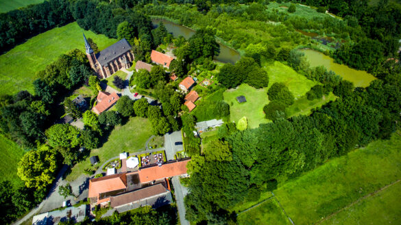 Ein erster Stopp kann am Pausenplatz in Mitwick eingelegt werden. Weiter führt die Tour nach Buldern. Hier war die Heimat des Adeligen Gisbert von Romberg (1839 – 1897), bekannt unter dem Namen „der tolle Bomberg“. Der Baron erregte durch seinen aufwendigen Lebensstil, seine Lebensfreude und seine derben Streiche viel Aufsehen und Kritik bei seinen Zeitgenossen. Die Tour führt in Buldern am Spiekerplatz vorbei. Der Große Spieker ist über 250 Jahre alt. Seit 2003 sind im Spieker in Buldern standesamtliche Trauungen in münsterländisch-rustikalem Ambiente möglich. Der nächste Stopp kann am Mittelpunkt des Kreises Coesfeld eingelegt werden – hier lässt es sich gut picknicken (Bank-Tisch-Kombination). Wer Lust hat, kann einen Abstecher zum Bulderner See unternehmen. Anschließend führt die Route zu einer weiteren Besonderheit: dem ehemaligen Kloster Karthaus, einem historischen Ort der Muße und der Frömmigkeit. Hier lebten einst Karthäuser Mönche. In der alten Klosterkirche findet man auch heute noch einige Kostbarkeiten vor. Besonderer Blickfang ist das reich verzierte schmiedeeiserne Rokoko-Gitter aus dem Jahr 1752. Ein paar Meter weiter führt die Route am Anna-Katharinenstift und an den Werkstätten Karthaus vorbei. Hier leben und arbeiten heute Menschen mit Behinderung. Neben einer Vielzahl von Bioprodukten können im Boutique-Bereich Gebrauchs- und Babyartikel aus Biobaumwolle, Holzspielwaren und Eigenprodukte aus der Kollektion Karthaus erworben werden. Durch die Bauerschaft Empte führt die Tour zum Naturschutzgebiet Welter Bach – ein wahres Naturjuwel, das zum Staunen einlädt. Hier lohnt sich ein kleiner Abstecher zur Aussichtskanzel, denn von hier lassen sich die imposanten Galloway-Rinder beobachten. Vielen Vogelarten, wie Bekkasine, Eisvogel und Kiebitz, dient das Schutzgebiet als Rastplatz, Brut- oder Nahrungsrevier. Mit vielen neuen Eindrücken fahren die Radler zurück nach Dülmen. Ein Highlight auf dem letzten Streckenabschnitt stellt das Lüdinghauser Tor dar.