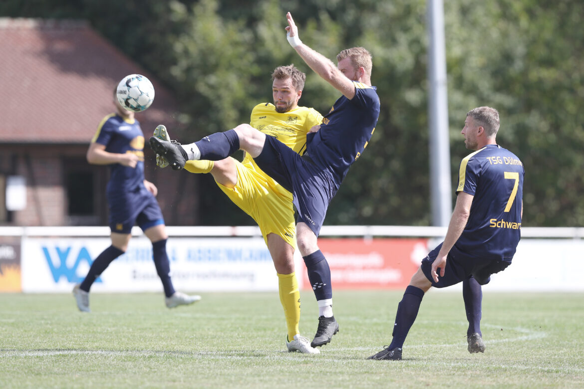 Dülmen. „Wir haben schnell gemerkt: In dieser Liga werden Fehler viel konsequenter bestraft“ – Marvin Möllers von der TSG Dülmen zog nach der 2:3-Auftaktniederlage gegen Dorsten-Hardt ein nüchternes Fazit. „In der ersten Hälfte war es eine Partie auf Augenhöhe, eher ein Mittelfeldspiel mit wenigen Chancen. In der zweiten Hälfte haben wir dann leider schnell zwei weitere Gegentreffer kassiert und es nicht geschafft, das Spiel noch zum Unentschieden zu retten.“ Gründe für die Niederlage sieht Möllers auch in der Kaderstärke: „Wir sind leider nur mit zehn ,fitten‘ Spielern angetreten. Das hat man leider gemerkt.“ Für das nächste Meisterschaftsspiel – am Sonntag geht es zu Vorwärts Wettringen –wollen die Blau-Gelben den Respekt ablegen, mutiger spielen und die Niederlage schnell abhaken. Personell bleibt es allerdings auch schon beim Pokalspiel gegen Lüdinghausen an diesem Donnerstag angespannt. Zum Sonntag wird Aziz Retzep wohl zurückkehren, Mario Espeter hat seine Sperre abgesessen, Robin Kettner wird wieder fit sein. Hinter den Einsätzen von Christian Korte und Patti Besler steht ein Fragezeichen, die Chancen für einen Einsatz von Patti Besler sind aber höher, wie Marvin Möller es zusammenfasst. „Wir wollen beide Spiele gewinnen, das steht fest.“