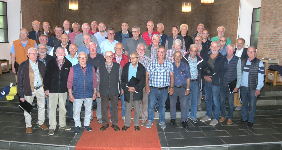 Dülmen. Die drei Dülmener Männerchöre Chorgemeinschaft, MGV Sängerbund und Sängerchor Loreley haben sich auf den Weg gemacht in Richtung Zusammenschluss. Ein Ergebnis erlebten die Besucher der Festmesse des Kohvedel-Schützenfestes am Samstag in der Kirche St. Joseph. Unter dem Dirigat von Helmut Kathmann (Zweiter von rechts; hier ein Foto von der Probe zwei Tage zuvor), der seit Jahrzehnten den MGV Sängerbund leitet, sangen über 40 Tenöre, Baritone und Bässe unter anderem das „Heilig, heilig“ von Franz Schubert, das „Preiset froh den König“ von Henry Purcell und unter anderem auch das „Vaterunser“ vierstimmig. Hintergrund für die Bemühungen, die drei Chöre auf Dauer zusammenzuführen, ist nicht zuletzt die demographische Entwicklung. Auch vor diesem Hintergrund ist die Zahl der aktiven Sänger in den drei Männerchören in den vergangenen Jahren zurückgegangen. So zählt der Chor Loreley aktuell zwölf aktive Sänger, bei der Chorgemeinschaft Dülmen werden gegenwärtig 28 Mitglieder als aktiv geführt, und der MGV Sängerbund kommt auf 25 aktive Sänger in seinen Reihen. Wie stimmlich voll es klingt, wenn alle drei Chöre ihre Potenziale zusammenführen, war Samstag in St. Joseph zu erleben. „Welch toller Klang – dafür ist man Chorleiter“, hatte Dirigent Helmut Kathmann Dienstag zuvor bei der gemeinsamen Probe im Gasthaus Sternemann frohlockt. Die gemeinsamen Proben sind nachhaltig: Auch am Sonntag, 21. August, bei der Bürgerschützen-Festmesse in St. Viktor, bei der Schützenfest-Messe der Kolpingsfamilie Dülmen am Samstag, 3. September, und bei der zentralen Feierstunde des Landes NRW zum Volkstrauertag am Samstag, 12. November, in der St.-Viktor-Kirche wirken die Sänger aus den drei Dülmener Männerchören musikalisch mit.