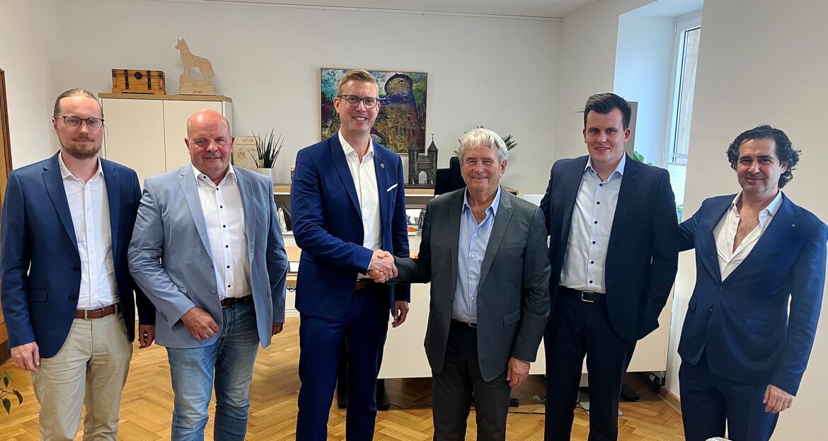 „Das ist eine sehr gute Nachricht für unsere Stadt und den Wirtschaftsstandort. Mit der Magni-Gruppe siedelt sich ein weiteres renommiertes Unternehmen in Dülmen an“, sagt Carsten Hövekamp. Der Bürgermeister unterzeichnete heute mit Riccardo Magni (Inhaber und CEO), Carlo Magni (Managing Director) und Alexander Reisch (Sales Director, Prokurist, Standort Deutschland) offiziell die entsprechenden Verträge.