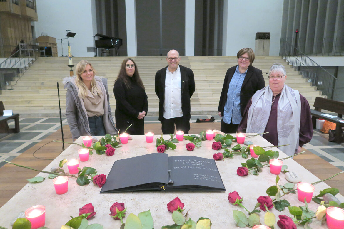 Nun wurden am Freitag die 18 Namen der seitdem verstorbenen Bewohnerinnen und Bewohner des Heilig-Geist-Stifts genannt und ihre Todestage, wie sie auch in einem Buch aufgeschrieben sind, das im Eingangsbereich des Seniorenheims liegt. Und auch der Name Martin Suscheks, der bis zu seinem Tod im Alter von 52 Jahren als Sozialpflegerischer Vorstand der Heilig-Geist-Stiftung tätig gewesen war. Je ein Stein mit dem Namen eines der Verstobenen und auch eine Rose wurden neben einer Kerze auf den Altar der Kreuzkirche gelegt. Die Angehörigen der Verstorbenen wurden schließlich eingeladen, jeweils eine Rose, eine Kerze und den Stein mit dem Namen des oder der Angehörigen mit nach Hause zu nehmen.