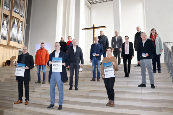 Der große graue Körper liegt flach auf dem Boden. Die Flossen breiten sich neben ihm aus. Er wirkt stark und verletzlich zugleich. Die Skulptur des 14m langen Wals des aus Israel stammenden Künstlers Gil Shachar wird im März 2022 in der Dülmener Hl. Kreuz Kirche zu sehen sein – nach Ausstellungen im Kunstmuseum Bochum und in Berlin.