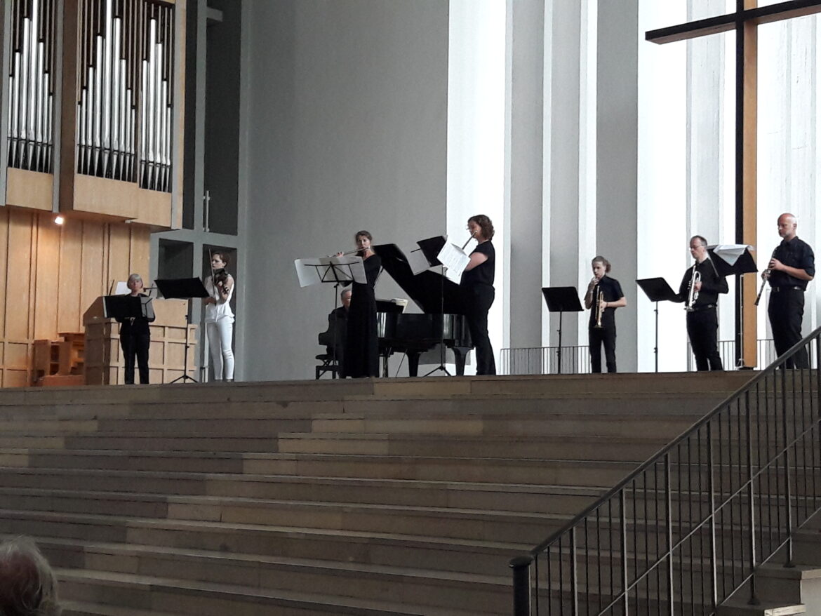 Gertrud Jebing, Blockflöte, Sigrid Stratmann und Ulrike Strajhar, Querflöte, Thomas Stählker und Kester Zylka, Trompete, Carlotta Joachim, Violine, Ulrich Weimann, Oboe und Bernd Weimann, Orgel, Flügel und Gesamtleitung, gestalteten wie in den Jahren zuvor ein abwechslungsreiches und vielseitiges Programm mit Werken aus Barock, Klassik und Romantik. Mit dem Stück „Zwischenbericht“ der jungen Dülmener Komponistin Carlotta Joachim, stand auch ein zeitgenössisches Stück auf dem Programm. „Es ist ein besonderes Erlebnis, wenn man ein Werk von der Komponistin selbst dargeboten bekommt“ äußerte ein Zuschauer im Anschluss an das Konzert.