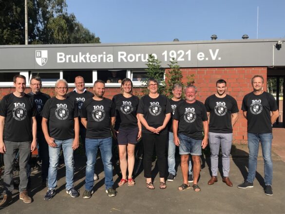 Rorup. Im Rahmen des 100. Geburtstags hat Brukteria Rorup ein Jubiläumsshirt rausgebracht. Seit einigen Tagen ist es frischbedruckt fertiggestellt, die ersten 200 Shirts wurden – zumeist an die Mitglieder – bereits verteilt. Am Dienstagabend hatte der Brukteria-Vorstand nun die insgesamt 10 Sponsoren ins neue Clubheim eingeladen, um Danke zu sagen. „Nur durch die Hilfe der Sponsoren ist es möglich, allen Mitgliedern ein Shirt für nur 5 Euro zur Verfügung zu stellen“, so die Vorsitzende Kirsten Hülsenbeck.