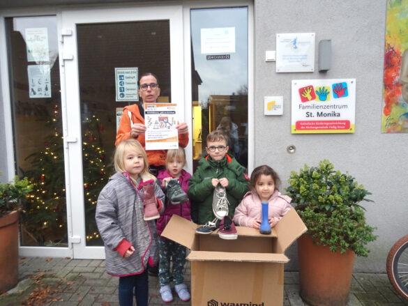 „Wir würden uns freuen, wenn auch Sie Ihre alten Schuhe bei uns in der Einrichtung abgeben würden, denn somit unterstützen Sie das SHUUZ-Projekt sowie unsere Kita. Für jedes Kilogramm Schuhe erhält die Einrichtung eine kleine Spende von 0,22 Euro“, so die Verantwortlichen des Familienzentrums. Spender können ihre Schuhe von Montag bis Freitag von 7.30 bis 16.30 Uhr im Familienzentrum St. Monika, Hülsenweg 17, abgeben. „Wir freuen uns auf Ihre Schuhe!“