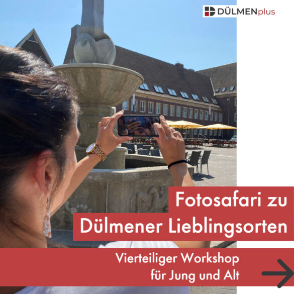 Dülmen. „Fotosafari – Meine Lieblingsorte in Dülmen“ lautet der Titel eines Workshops, zu dem das Mehrgenerationenhaus ab Dienstag, 16. August, in die Neue Spinnerei einlädt. An insgesamt vier Terminen geht es, jeweils von 16 bis 18 Uhr, mit Kursleiter Martin McKiernan auf die Suche nach dem Lieblingsmotiv. Ob Jung oder Alt, ob eigene Kamera oder Smartphone – der Kurs richtet sich an alle, die sich in der Fotografie kreativ selbst verwirklichen oder das Fotografieren erlernen möchten. Neben Basiswissen und hilfreichen Tipps im Umgang mit Kameras wird der Blick auf Kunst und Design im Bereich der Fotografie gerichtet. Hier können die Teilnehmenden Prinzipen der Fotografie in die Praxis umsetzen. Termine: 16. und 23. August, 06. und 13. September. Anmeldungen sind möglich in der Neuen Spinnerei unter Telefon: 02594 12-596 oder per Handy / WhatsApp: 0172 9778158.