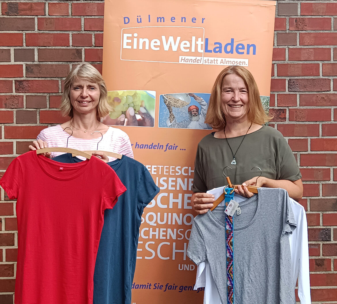 Ob Heimtextilien, Kleidung, Schuhe oder Taschen: Inzwischen gibt es viele Textilien aus Fairem Handel. „Engagierte Dülmener*innen können durch den Kauf solcher Produkten bessere Produktions- und Arbeitsbedingungen weltweit fördern“, so Prior. In Kleidung und Textilien sind oft Label und Siegel zu finden, die auf faire Herstellungsprozesse hinweisen.