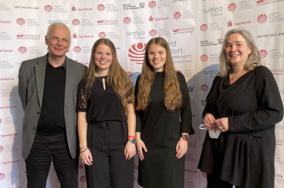 Die Zwillingsschwestern Annika und Sarina Schulz sind Schülerinnen in der Gesangsklasse von Musikschulleiterin Verena Voß. Sie haben in der Kategorie „Vokalensemble“ teilgenommen und qualifizierten sich mit dem 1. Preis für den Bundeswettbewerb. „Dort werden sie sich mit den besten jungen Musikerinnen und Musikern aus ganz Deutschland messen“, berichtet Verena Voß. Einen großen Anteil am Erfolg des Duos habe auch Kantor Lothar Solle, der die beiden am Klavier begleitet hatte.