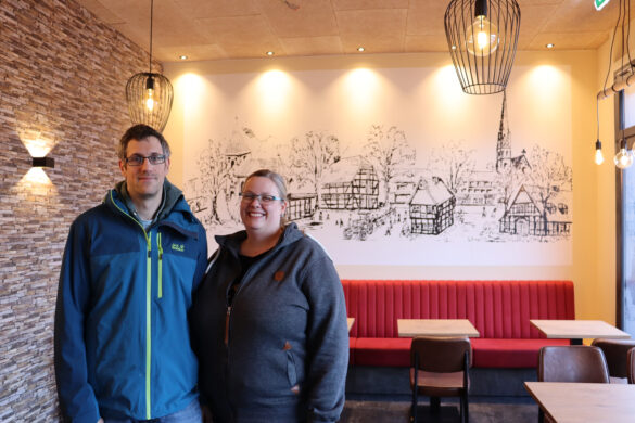 Senior-Chef Herrmann Grote ist sichtlich zufrieden: „Es ist richtig schön geworden! Wir sind damit vom Westen Bulderns in den Osten gezogen – aber dafür können wir nun mehr Kunden vor Ort bedienen – sobald es wärmer wird, sogar draußen!“ Knapp 120 Quadramteter groß ist die neue Filiale, an alter Stelle im Aldi-Markt waren es nur 45 Quadratmeter. Ein besonderer Hingucker ist das Wandbild an der rechten Seite der Filiale – es wurde in ähnlicher Form bereits für die Ortsgemeinschaft gestaltet.