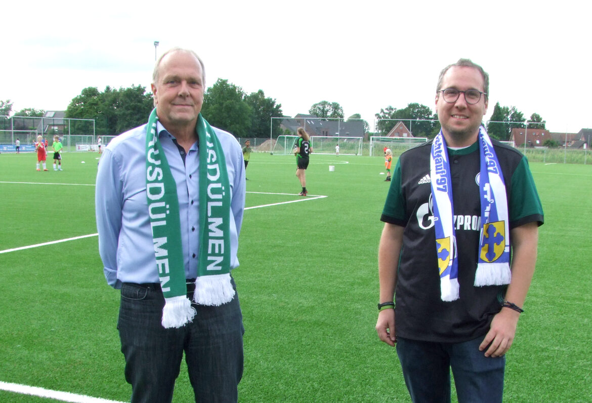 Hausdülmen. Kreispokal statt 2. Bundesliga: Der Schalke-Fanclub „Steht auf“ unterstützt am Sonntag GW Hausdülmen im Kreispokal gegen den FC Ottenstein. „Wir wollen mit dem Besuch den Amateurfußball etwas in den Fokus rücken und einfach mal abseits des Profifußballs gemeinsam ein Spiel besuchen und einen schönen Nachmittag verbringen – dies war aufgrund der Corona-Pandemie lange nicht möglich. Jetzt wollen wir mal nicht in Gelsenkirchen, sondern in Hausdülmen für Stimmung sorgen“, so Florian Kübber, Vorsitzender des S04-Fanclubs „Steht auf“, der im nächsten Jahr sein 25-jähriges Jubiläum feiert. „Der Vorstand fand die Idee richtig gut, wir freuen uns jetzt auf einen schönen Fußballtag bei uns an der Sandstraße“, erläutert der Vorsitzende von Grün-Weiß Hausdülmen, Andreas Metelski. Am Sonntag soll nicht nur Werbung für den Amateurfußball gemacht werden, gemeinsam wollen Fanclub und Sportverein auch für den guten Zweck sammeln. „Wir wollen zusammen die Flutopfer unterstützen, dazu werden wir ein Spendenschwein aufstellen, in das jeder Besucher etwas werfen kann“, so Kübber. Aufgestockt wird der Spendenbetrag anschließend von GW Hausdülmen. „Wir werden mit dem Erlös aus dem Verkauf von Getränken und Essen und unserem Anteil an den verkauften Eintrittskarten den Spendentopf aufstocken und hoffen, dass sich die Gastmannschaft, die einen Teil der Einnahmen aus dem Eintrittskartenverkauf bekommt, auch daran beteiligt“ berichtet Metelski.