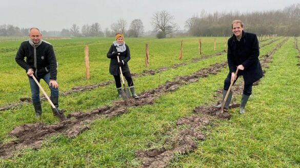Kreis Coesfeld. Die Neuanpflanzung von Hecken wird beim Kreis Coesfeld im kommenden Jahr mit EU-Fördermitteln umfangreich unterstützt. Damit sollen ökologisch wertvolle Strukturen und Lebensräume geschaffen werden Landrat Dr. Christian Schulze Pellengahr traf sich nun mit Anna Solinski und Christoph Steinhoff von der Unteren Naturschutzbehörde zum ersten Spatenstich am Mersmannsbach in Billerbeck.