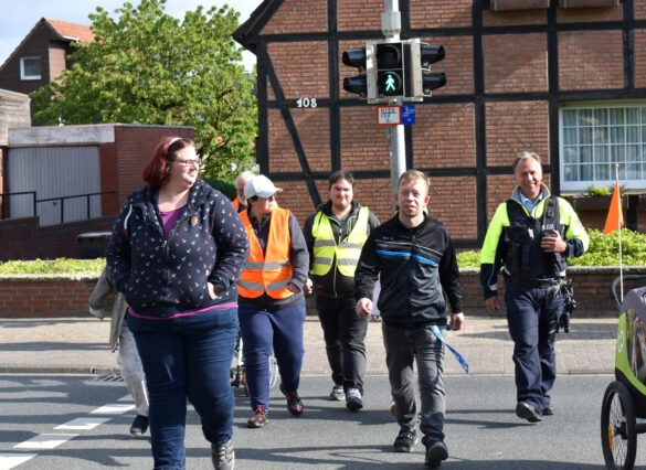 Dülmen. „Polizei zum Anfassen“ – das ist das Motto des Bezirksbeamten Klaus Sikorski und das gefiel auch den Bewohnerinnen und Bewohnern des Anna-Katharinenstift Karthaus. An zwei aufeinander aufbauenden Terminen führte der Beamte ein Verkehrstraining mit interessierten Personen aus dem Stift durch. „Ich finde es wichtig, über Gefahren aufzuklären und bin auch in Schulen und Kindergärten aktiv. Dadurch baue ich gleichzeitig Barrieren und Ängste gegenüber der Polizei ab“, erzählt Klaus Sikorski. Nachdem der erste Termin auf der Karthaus für den theoretischen Input stattfand, traf sich die Gruppe am Mittwochabend, 24. Mai, innenstadtnah. Wie überquert man sicher eine Straße? Was bedeuten bestimmte Verkehrsschilder? Was ist der Unterschied zwischen einer Überquerungshilfe und dem Zebrastreifen? Der Bezirksbeamte für Dülmen-Nord klärte diese und weitere Fragen beim Spaziergang an der Hauptstraße und im Wohngebiet.
