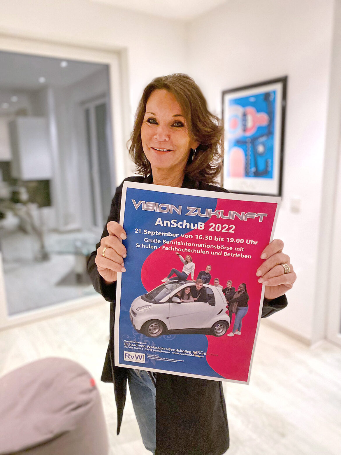 „Wir sehen es als wichtige Aufgabe an, junge Menschen, die kurz vor dem Einstieg in das Berufsleben stehen, über ihre Ausbildungsmöglichkeiten in unserer Region zu informieren“, erklärt Gabriele Kortenhorn, die organisierende Lehrerin der Schule. „Wir bringen auf der ,AnSchuB‘ potenzielle Auszubildende mit den Betrieben aus der Region zusammen. Wir wünschen allen Teilnehmerinnen und Teilnehmern bei der Suche nach ihrem Wunschausbildungsplatz viel Erfolg!“