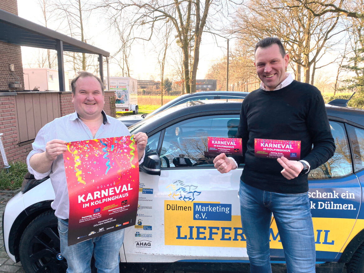Dülmen. Gute Nachrichten für alle, die in Dülmen Lust auf Karneval haben: am Karnevalssamstag und am Rosenmontag finden im Kolpinghaus Karnevalspartys statt! Gemeinsam stellen Klaus Göckener von MP Veranstaltungstechnik, Andreas Scheipers von „An Koppel Steen“ und Dülmen Marketing die zwei Partys auf die Beine.
