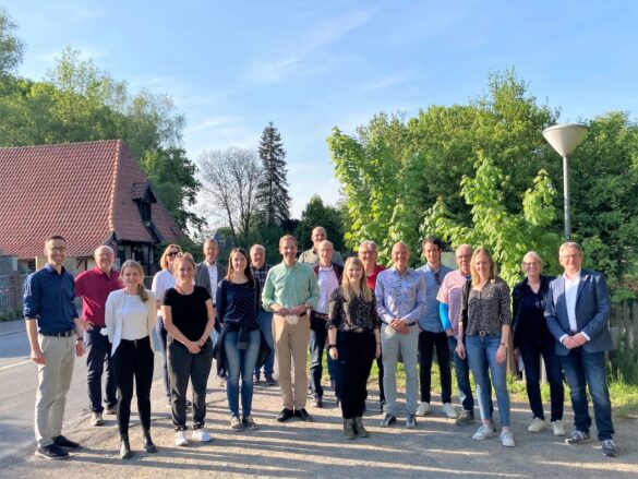 Kreis Coesfeld. Bei strahlenden Sonnenschein startete nun die Mitgliederversammlung des KlimaPaktes in diesem Jahr im südlichen Kreisgebiet – genauer gesagt an der Wasserkraft- und Stauanlage Füchtelner Mühle an der Stever in Olfen. Geschäftsführer Stefan Bölte von der Gesellschaft des Kreises Coesfeld zur Förderung regenerativer Energien mbH (GFC) berichtete hier über die Sanierungsarbeiten an diesem historischen Kulturdenkmal. In Zukunft soll hier in einem Verbundprojekt des Kreises und der Stadt Olfen aus Wasserkraft wieder Strom erzeugt werden. Mit der Modernisierung und der Organisation des zukünftigen Betriebes haben Kreis und Stadt die GFC beauftragt. „Dieses gemeinsame Projekt ist eine tolle Symbiose, um Denkmalschutz und nachhaltige Energieerzeugung zu verbinden, den Ausbau erneuerbarer Energien zu fördern und die Nutzung für die Zukunft zu sichern“, betont Landrat Dr. Christian Schulze Pellengahr.