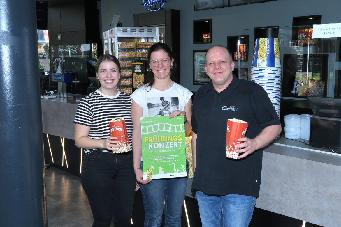 Wie das musikalisch sein wird, erlebten die Mitglieder der Stadtkapelle am Samstag bei einer gemeinsamen Probe im Cinema. „Die Situation vor Ort erst bei der Generalprobe zu testen war uns zu kurzfristig. Deswegen haben wir heute schon einmal hier eine Probe gemacht“, so Nora Bolle.