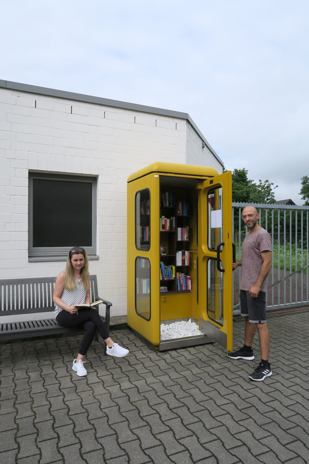 „Mit der Telefonzelle möchten wir nun etwas an die Leute zurückgeben. Die Nachfrage ist bereits groß, vor allem am Wochenende“, freut sich Julia Bürmann über das bisherige Feedback. Da sie und Babak Mehrkam gegenüber wohnen, sehen sie schnell, wenn Artikel entnommen werden und können so die Regale direkt wieder füllen. Wer also noch nach der passenden Ferienlektüre sucht, wird in der gelben Kabine vielleicht fündig werden.