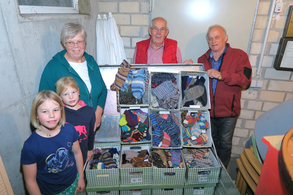 389 Paar Socken gehen in den Verkauf – „so viele hatten wir noch nie bei einem Weihnachtsmarkt im Angebot“, sagt Viktor Becks von der KAB St. Joseph. Das Größenspektrum reicht von Größe 16 bis Größe 49; die Preise erstrecken sich von 5 Euro pro Paar der Größe 16 bis 20 bis hin zu 18,50 Euro für ein Paar der Größe 48/49. Die Farben sind ganz unterschiedlich.