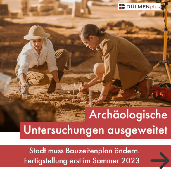 „Wie viele Dülmerinnen und Dülmener sehne auch ich das zügige Ende der Bauarbeiten in der Innenstadt herbei. Auf die archäologischen Untersuchungen haben wir als Stadt allerdings nur wenig Einfluss“, sagt Bürgermeister Carsten Hövekamp. Der Landschaftsverband Westfalen-Lippe (LWL) mit seinem Fachamt für Archäologie ist für den Bodendenkmalschutz zuständig und legt den Umfang der Ausgrabungen fest. Die Stadt wiederum muss auf dieser Grundlage die Untersuchungen beauftragen und die Kosten tragen.