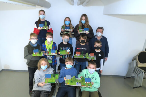In der AG-Sitzung vergangene Woche sind die Zehn- bis Zwölfjährigen der fünften und sechsten Jahrgangsstufe auf der Zielgeraden und kleben die letzten Elemente und Deteils auf und an ihre Einfamilienhausgrundstücksmodelle, die keineswegs monoton sind. Allein schon die Lage der Häuser auf dem Grundstück ist häufig unterschiedlich – und auch mal anders als im rechten Winkel. So wie im echten Leben eben.