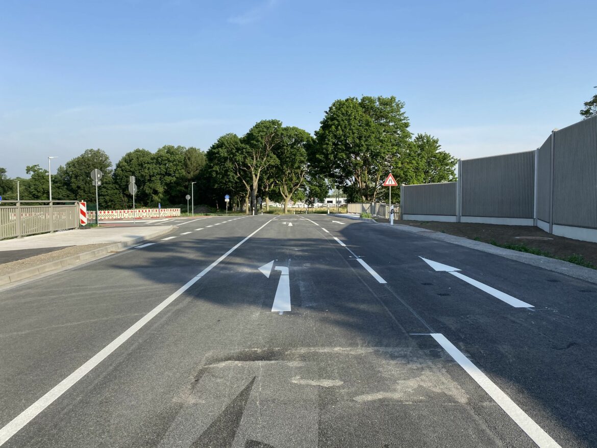 Dülmen. Nach rund einem Jahr Bauzeit ist der nächste Bauabschnitt der Dülmener Südumgehung (Kreisstraße 17n) zwischen Mühlenweg und Gausepatt seit dem heutigen Freitag, 18. Juni, fertiggestellt und freigegeben. „Die lang ersehnte Entlastung der Dülmener Innenstadt vom Schwerlastverkehr ist damit ein weiteres Stück näher gerückt“, sagt Bürgermeister Carsten Hövekamp. Auf einer Strecke von 1,3 Kilometern führt die Südumgehung nun von der „Langen Nase“ an der Lüdinghauser Straße bis zum Gausepatt. Hier wurden in den vergangenen Monaten mit großem Aufwand die Brücke über den Tiberbach und das damit verbundene Kanalsystem erneuert. Auch eine Lärmschutzwand in Richtung der angrenzenden Bebauung wurde errichtet.