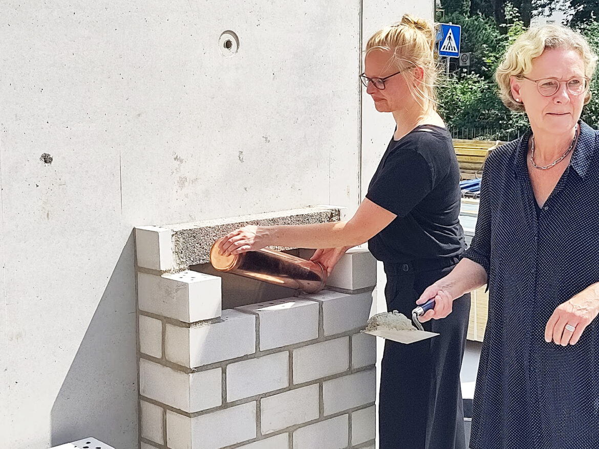 Dülmen. Der alte Trakt aus dem Jahr 1964 ist abgerissen. Der Grundstein für den neuen wurde noch kurz vor den Ferien gesetzt. In den kommenden rund eineinhalb Jahren wird die Baustelle an der Marienschule in Dülmen zum Alltag gehören. Doch dann steht den Schülerinnen und Schülern sowie den Lehrerinnen und Lehrern ein modernes dreigeschossiges Gebäude zur Verfügung, bei dessen Erstellung das Thema Nachhaltigkeit eine wichtige Rolle spielt und in dem zeitgemäß Schule ermöglicht wird.