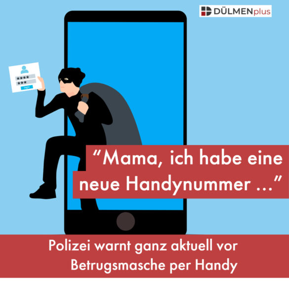 Dülmen. „Mama, ich habe eine neue Handynummer…“, so oder ähnlich beginnen im Moment mehrere Betrugsdelikte, die bei der Polizei angezeigt werden. So erging es auch am Montag (28.3.) einer 55-jährigen Dülmenerin. Im weiteren Verlauf wurde die Mutter über den genutzten Messenger Dienst gebeten einen Betrag von 1.637,88 Euro zu überweisen, weil es Probleme mit der Bankverbindung gebe. In diesem Fall kam es zu Auffälligkeiten mit dem angegebenen Konto, auf das der Betrag überwiesen werden sollte. Deshalb meldete sich die Bank bei der Dülmenerin und die Gutschrift auf das fremde Konto wurde zunächst aufgehalten. Eine Nachfrage bei der Tochter, die angeblich das neue Handy haben sollte, ergab, dass diese Angaben nicht der Wahrheit entsprechen.