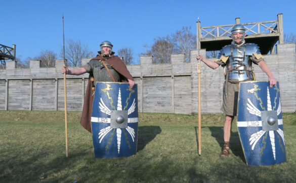 Von März bis Oktober sind Ralf Koritko und Ralf Tenge alle paar Wochenenden sonntags auf dem Außengelände des Museums anzutreffen. Dort, im Aliso-Park hinter dem Museum, steht seit ein paar Jahren auf 90 Metern Länge eine Nachbildung der mehrere Meter hohen Holz-Erde-Mauer des römischen Militär-Stammlagers der 19. Legion, das sich hier befunden hat. Mitten in der Mauer das nachempfundene Westtor des Lagers, rekonstruiert an der Stelle, an der bei Grabungen Reste der urspünglichen Toranlage im Boden zu finden gewesen waren. In den übrigen, kälteren Monaten, wenn das Außengelände geschlossen ist, versehen die beiden Legionäre gelegentlich auch Museums-Innendienst.