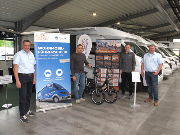 Darüber hinaus wird anschaulich gemacht, wie die Fahrrädermitnahme mit Reisemobilen erfolgen kann: zum einen mit fest installierten Fahrradträgern, zum anderen mit einem elektrisch hochfahrbaren Bike Lift, mit dem die Fahrradmitnahme um einiges leichter wird, weil das Hochwuchten der Räder wegfällt. Darüber hinaus stellt die Fahrschule Dialog vor, wie in kurzer Zeit ein für manche Reisemobile notwendiger Führerschein für höhere Fahrzeugmassen erworben werden kann. Fürs leibliche Wohl der Besucherinnen und Besucher sorgt Samstag und Sonntag Maltes Imbiss aus Nottuln.