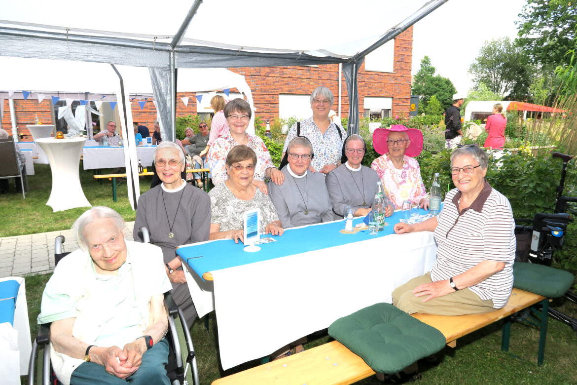 „Es ist schön, dass das Wetter heute so toll mitspielt“, sagt Einrichtungsleiter Christian Lohmann am Rande des Sommerfestes, das die Bewohnerinnen und Bewohner des Hauses, die in den sechs Wohngruppen à zwölf Plätzen leben, gemeinsam mit ihren Angehörigen genießen können. Unter den Bewohnerinnen auch 43 Clemensschwestern (siehe Seite 1).