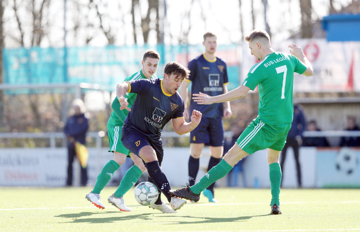 Am vergangenen Sonntag hatten die Tabellenführer der TSG Dülmen kein eigenes Spiel – und sind dennoch als Sieger in die Woche gestartet. Während VfB Hüls und der FC Marl sich beim 4:4 gegenseitig die Punkte wegnahmen, ging der BV Rentfort 0:3 bei Genclikspor Recklinghausen baden. TSG-Kicker Marvin Möllers war beim 4:4-Remis vor Ort: „Besser hätte man ein Derby-Drehbuch nicht schreiben können“, schmunzelte er nach der Partie. „Drei Rote Karten. Marl hat bis zur 87. Minute geführt. Bekommt dann erst einen normalen Gegentreffer und macht dann in der letzten Minute ein Eigentor. Aus unserer Sicht natürlich großartig. Für Marl aber bitter.“ Die sieglosen Partien der Gegner sorgen nun für weitere Beruhigung: „Wir haben damit mindestens sieben Punkte Vorsprung – der FC Marl hat ja noch ein Nachholspiel offen – aber das ist natürlich komfortabel. Wir können zwei Mal verlieren und sind immer noch an der Spitze.“ Doch das soll natürlich nicht passieren: „Wir werden weiter in jedem Spiel auf Sieg gehen. Ist doch logisch.“ Am liebsten schon am Sonntag, da wird der SV Zweckel in Dülmen gastieren: „Gegen Zweckel haben wir bisher noch nie gewonnen. Immer nur unentschieden. Das muss sich ändern. Von der Tabellensituation lassen wir uns nicht blenden – auch, wenn die auf der 15 stehen, ist es denen gelungen, gegen Merfeld fünf Buden zu machen. Das muss man erst einmal schaffen. Wir sind gewarnt!“