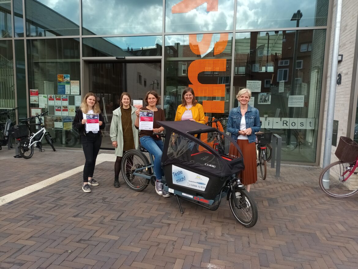 „Für uns ist es eine tolle Kooperation. Unsere Kursteilnehmenden und Gäste können auf diese Weise unkompliziert das Lastenrad testen. Wir hoffen, dass viele Menschen diese Möglichkeit nutzen“, so Rendel Werthmöller, Leiterin der FBS Dülmen. Informationen dazu und die freien Termine gibt es am Info-Point des einsA unter Telefon 02594 97995-100. Interessierte Gruppen, Unternehmen oder Gewerbetreibende können sich auch gerne bei Franziska Hettmer, Radverkehrsbeauftragte der Stadt, unter Telefon 02594 12-634 oder per E-Mail an f.hettmer@duelmen.de melden.