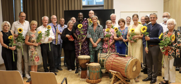 Mit afrikanischen Klängen (Anne und Christoph Winkler trommelten) sowie Christoph Falley startete Freitag im einsA die Benefizveranstaltung für Kenia. Pfarrer Imo Basols, der eine der Hungerregionen in Kenia betreut, schilderte die Notlage, die der Ukraine-Krieg noch verschärft: Die Gaszufuhr ist komplett gestoppt, die Zufuhr von Düngemittel und Getreide aus der Ukraine ist nicht mehr möglich. Zudem fallen Spenden aus beziehungsweise verlagern sich derzeit in Richtung Unterstützung ukrainischer Flüchtlinge. Kenia gehört zu den drei afrikanischen Ländern, die bis zu 80 Prozent von den Getreideimporten aus der Ukraine abhängig waren und sind. Gastgeber Freitag waren Sandra Allerdisse (Geschäftsleitung einsA), Werner Jostmeier (Honorarkonsul) sowie Dr. Marija Weißkirchen (Vorsitzende der Kenia-Hilfsaktion Euskirchen) und Christoph Weißkirchen (Landtag NRW). Auch unter anderem die Pfarrer Peter Nienhaus, Ferdinand Hempelmann und Markus Trautmann (nicht auf dem Foto) sowie Kolping-Sprecherin Ria Dennig und DRK-Vorstand Christoph Schlütermann nahmen teil. Dezernent Christoph Noelke richtete Grüße vom Bürgermeister Carsten Hövekamp aus. Dank auch einer Beteiligung der Volksbank Nottuln kamen über 2.500 Euro an Spenden zusammen; durch Kollekten in den Kirchengemeinden noch einmal mehrere hundert Euro. Das Spendenkonto lautet: Christoph und Marija Weisskirchen, IBAN: DE75 3125 1220 0008 6177 71, Verwendungszweck: Hilfe Kenia.