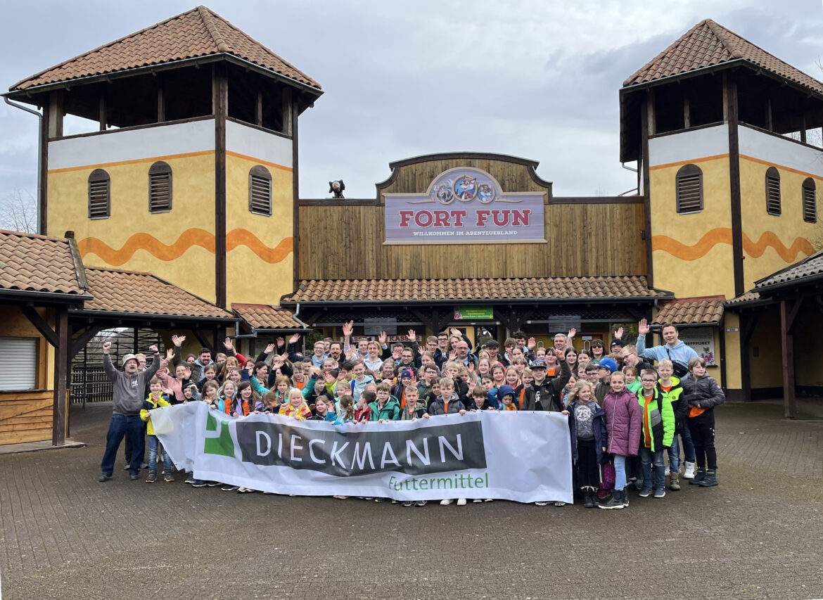 Dülmen. 79 Mädchen und Jungen sowie 27 Betreuerinnen und Betreuer genossen während der Ferientage nach Ostern bis Samstag die gemeinsame Zeit in Bruchhausen bei Olsberg im Sauerland. Gruppe-Finde-Spiel, Banner dekorieren, das Spiel „Schlag den Burgherrn“, Wandern zu den Bruchhauser Steinen, Pferde basteln, Fußball spielen, Tischtennis spielen, Ritterturnier (Stationslauf), Filme-Abend, Geschichten und Nachtwanderung für interessierte Kinder, Fantasygame mit Motto Mittelalter, das Spiel „1,2 oder 3“, ein Königsball mit „Party“ und ein Besuch im Freizeitpark Fort Fun (Foto): Es gab beim Osterlager St. Joseph in diesem Jahr wieder ein vielfältiges Programm, das auch von trockenem Wetter gekrönt wurde. Auftakt war vor der rund zweistündigen Bus-Anreise am Dienstag ein Reisesegen. Für ein Gelingen der Tage, über die das Betreuungsteam täglich auf Social Media berichtete, sorgte auch die rührige, mit vier Akteuren besetzte Küche. Unter anderem Nudeln mit Bolognese, Geschnetzeltes mit Tzaziki, Rührei mit Bacon und offene Buffets sorgten fürs leibliche Wohl. Ausdrücklicher Dank galt der Firma Dieckmann für das T-Shirt-Sponsoring und denjenigen Bauern um Dülmen herum, die einiges an Lebensmitteln spendeten. Betreuer und Lagerleiter, die allesamt Erste-Hilfe-Kurse und Jugendleitercard-Schulungen absolviert hatten, freuen sich schon jetzt auf das nächste Osterlager, das vom 22. bis 26. April 2025 im Hochsauerland stattfindet. Unterkunft ist wieder in einer dortigen Schützenhalle. – Weitere Eindrücke vom Osterlager St. Joseph ‘24 auf einer Fotoseite in unserem E-Paper. Dazu mit dem Smartphone den QR-Code links im grünen Kreis scannen oder Adresse www.duelmenplus.de aufrufen.