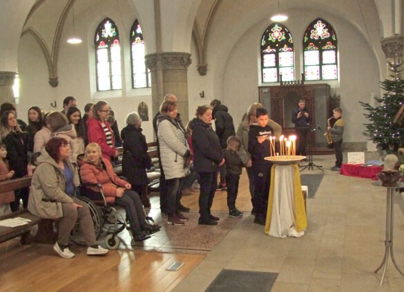 „Per Brief wurden die Familien eingeladen. Einige entschuldigten sich wegen Krankheit, und andere sind über Neujahr in die Ukraine zurückgefahren. Für die Einladungen haben sich die Geflüchteten sehr bedankt.“ Man habe bewusst den 7. Januar gewählt, um zu beten, weil es unter den Neubürgern viele Orthodoxe geben und an diesem Tag das orthodoxe Weihnachtsfest gefeiert würde. „Einige Personen vom Lenkungsausschuss der Flüchtlingsinitiative waren tatkräftig an der Veranstaltung beteiligt, besonders Herr Hermann Fortmann“, so Pfarrer Hempelmann mit weiteren Infos. „Mehrere aus der Gemeinde sowie von den ukrainischen Gästen haben beim Aufbau mitgeholfen.“ In dem gut 60-minütigen Gottesdienst wurden noch kleine Geschenke an die kleinen und großen Kinder verteilt. Auch konnte jeder Besuchende vorne eine Kerze zugunsten einer friedvolleren Zeit anzünden.