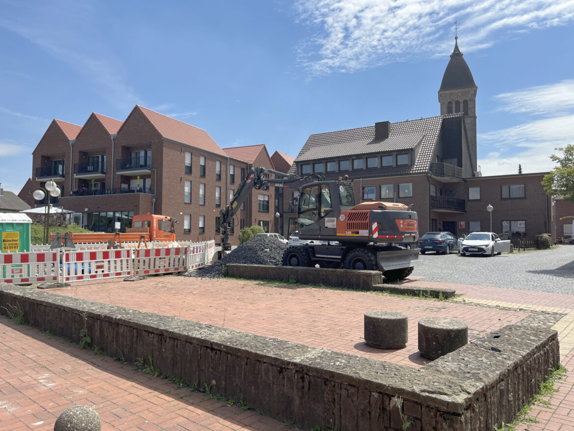 In den nächsten Tagen wird nun die Baustelle auf dem eigentlichen Platz eingerichtet, wo die Tiefbauarbeiten am Montag (25. Juli) beginnen werden. Die Wohn- und Geschäftshäuser am Alten Kirchplatz bleiben während der Bauarbeiten zu Fuß erreichbar, Ersatzparkplätze finden sich entlang der Coesfelder Straße und im Bereich Lindenstraße, Plerguerstraße und am Gemeindeplatz.
