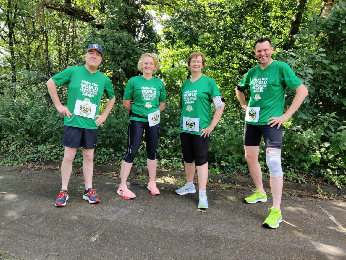 Am Sonntag haben sich die vier IDU-Vorstandsmitglieder Harald Wehmeyer (von links), Sonja Arning, Helen Swetlik und Klaus Göckener einer ganz besonderen persönlichen Challenge gestellt: Sie nahmen am Online-Lauf „Run for Trees“ teil und haben dadurch für das Pflanzen von 20 Bäumen gesorgt. „Es ging uns nicht um persönliche Zeiten, sondern wirklich darum, diese Aktion gemeinsam im Team zu bewältigen“, betont Sonja Arning. „So sind wir alle auch zusammen ins Ziel gelaufen.“ Bei der Aktion wurden in Kooperation mit „Active Giving“ für jede angemeldete Läuferin beziehungsweise jeden angemeldeten Läufer jeweils fünf neue Bäume gepflanzt. Für das Vorstandsteam eine sehr gute Motivation, die Laufschuhe zu schnüren. Foto: privat
