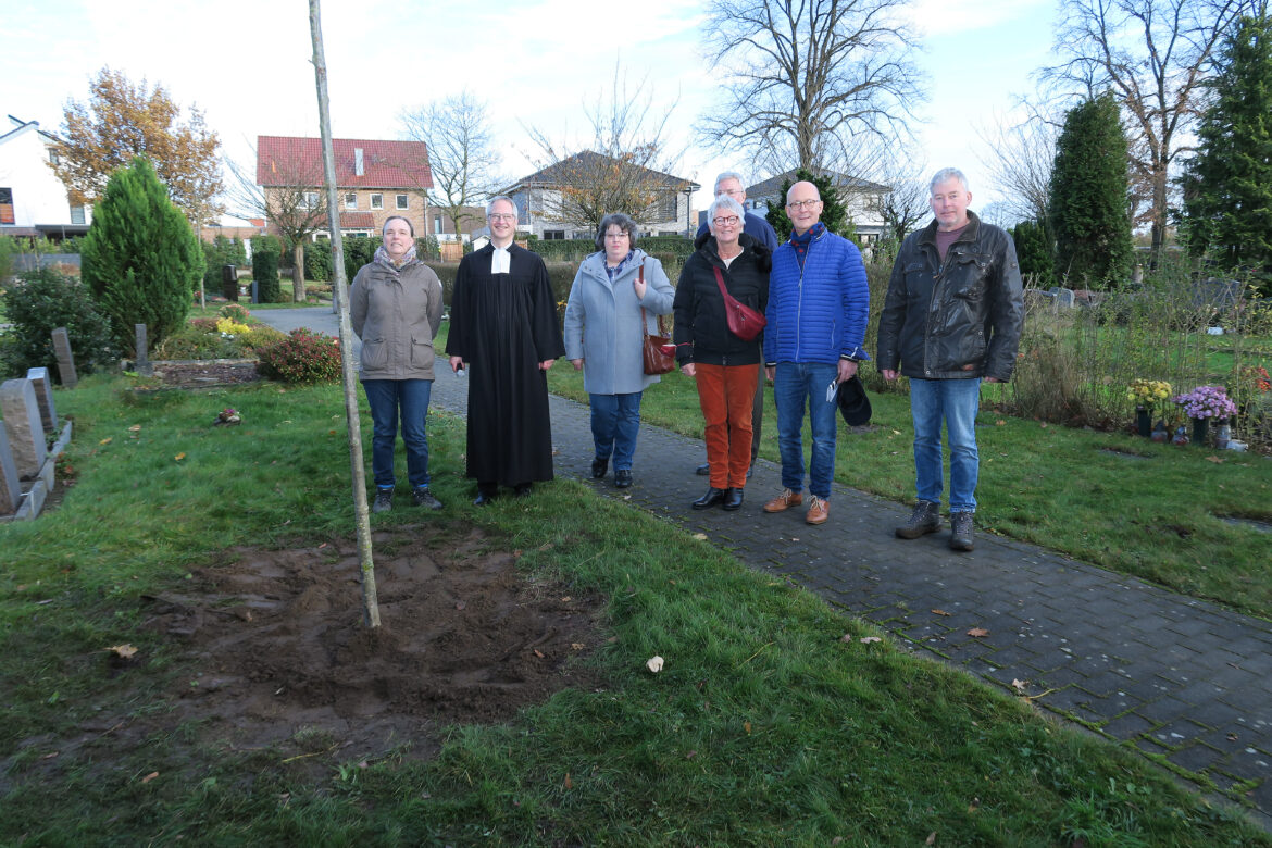 Wie in anderen Kirchengemeinden der Evangelischen Landeskirche von Westfalen hatte auch die Evangelische Kirchengemeinde Dülmen unter dem Leitwort „Bäume der Hoffnung“ (www.ort-der-hoffnung.de) zu Spenden aufgerufen für das Neuanpflanzen von Bäumen auf dem Friedhof. Statt der ursprünglich erwarteten drei Bäume konnten schließlich vier Bäume gepflanzt werden, freute sich Pfarrer Gerd Oevermann.